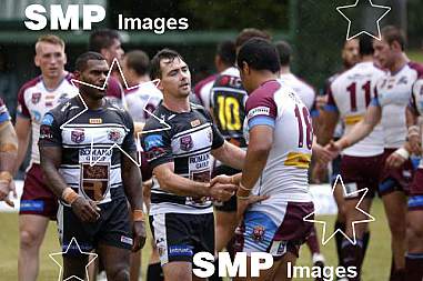 MICHAEL BURGESS of the Seagulls shakes hands with JOHN ASIATA of the Cutters