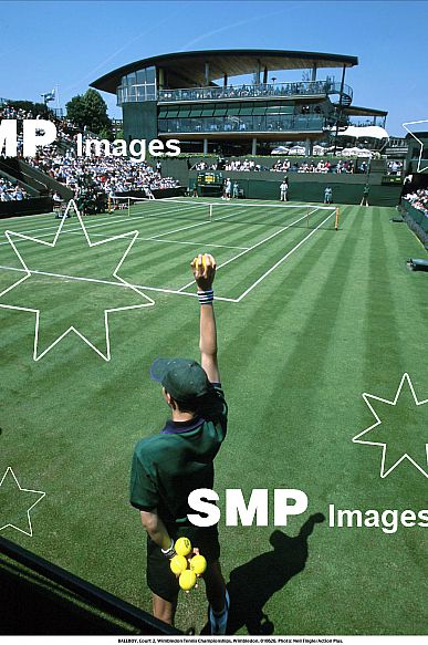 - Description: 26.06.2001. A ballboy holds up a tennis ball, Court 2, Wimbledon Tennis Championships, Wimbledon,